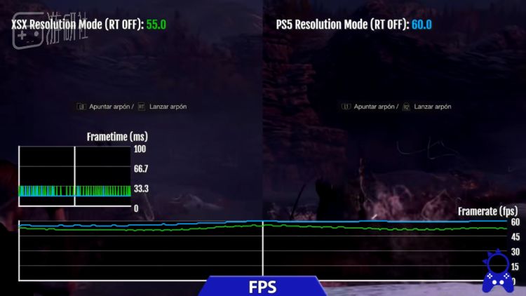 正因为刀具的判定变得关键,为了获得更加优秀的战斗体验,帧数显得尤为关键。当然对于PS5平台来说,这早已不再值得顾虑,在 “帧数模式”和“画质模式”已是业界标配的现在,主机玩家往往不需要操心优化问题,也不用为了帧数费心调整各种特效,画面与帧率的取舍只需一键切换。根据著名油管知名对比博主ElAnalistaDeBits放出的视频,如果不开启光线追踪,PS5在两种模式下的帧数波动都较为稳定,基本可以保持在60帧。