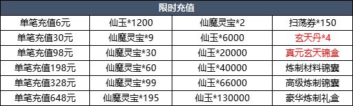 【活动名称】限时单笔充值【活动时间】3月29日维护后~4月5日5点【活动简介】活动期间内,单笔一次性充值指定的对应档位可领取以下奖励!在活动期间内可多次参与。