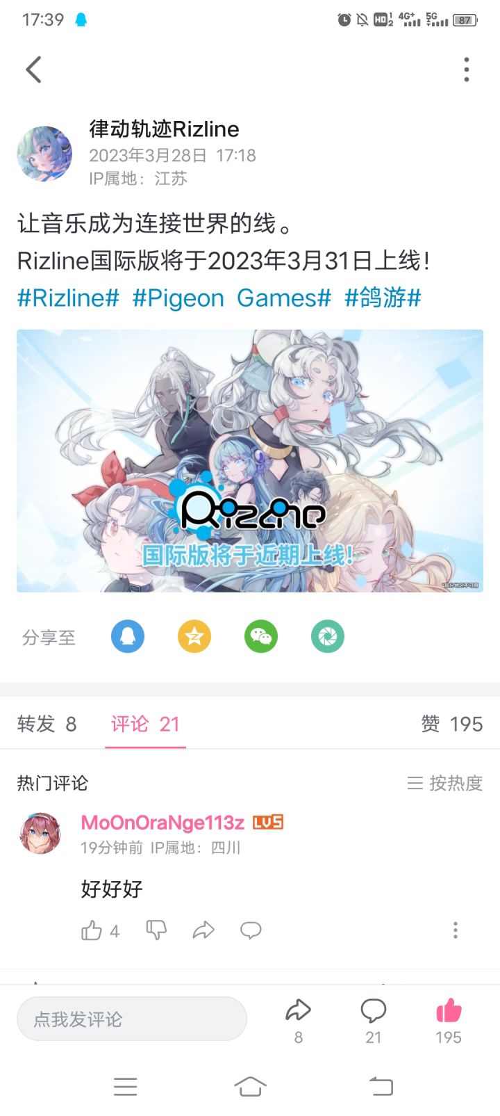 Rizline国际服将于3月31日正式上架