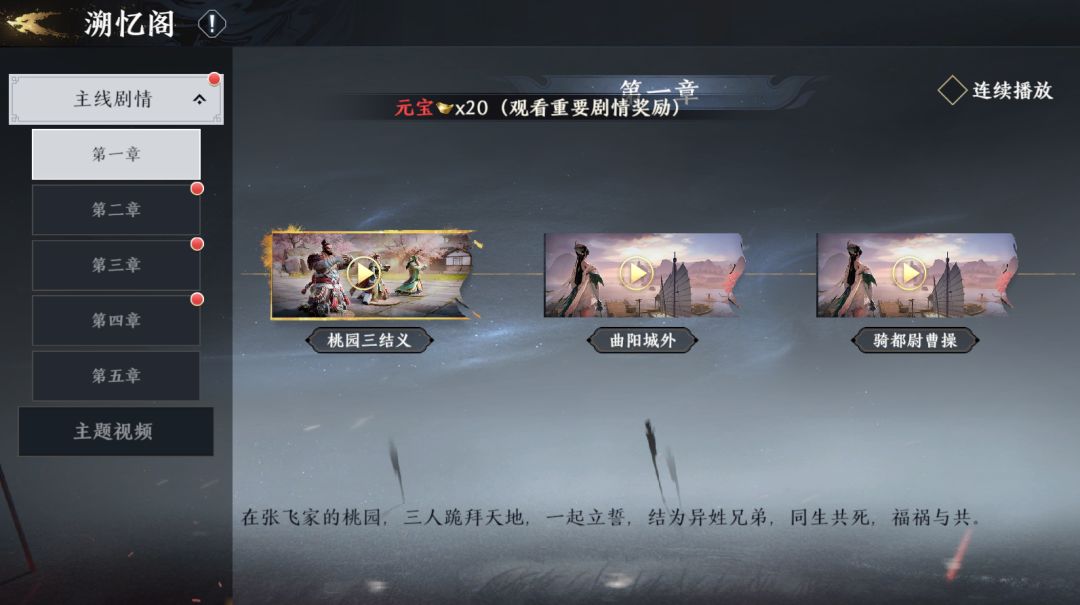 在溯忆阁中将会保存已经完成对应进度的主线剧情、部分活动剧情以及各版本开场视频,将军可以在溯忆阁中随时观看,每篇剧情动画都有一些简单的介绍,以帮助将军快速找到自己想要回顾的剧情。在观看视频前点击页面右上角的连续播放后再观看视频,还可以连贯享受当章的全部剧情动画。此外,进入重要视频页面后,也可以发送弹幕与其他将军交流讨论,不会因为是剧情回顾就少掉了发送和观看弹幕的乐趣~