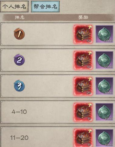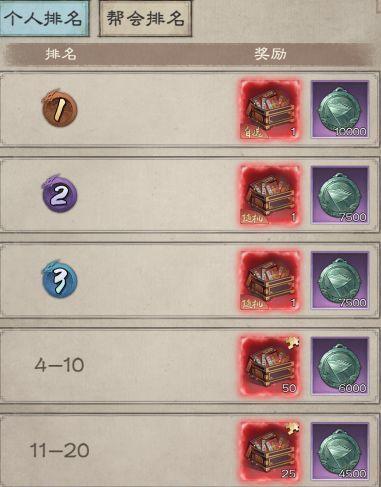 个人排名可以获取帮贡:0.1W-1W