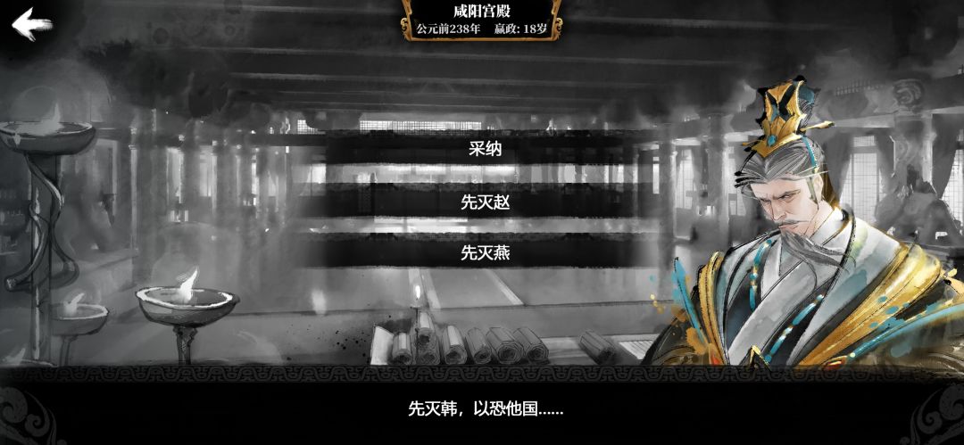 ●嬴政着手开始吞并六国的历史节点,剧本就会切换成的战略模式,在其中可以体验到嬴政灭六国时期的种种事件及决策,同时指挥部队征服六国。