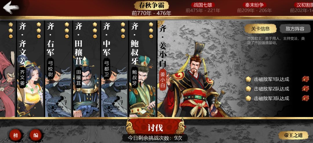 ●在本次大版本更新时同时会新增一个全新朝代霸业模式,各位主公从春秋争霸开始,挑战每个时代的各路霸主和诸侯