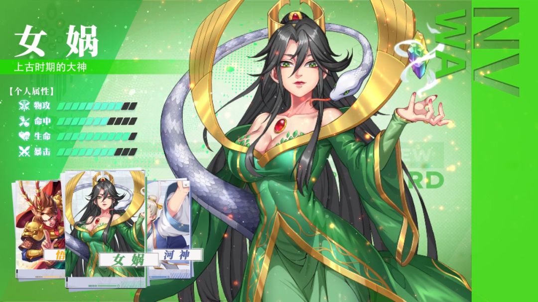 在女娲的手中,五彩补天石也能当作她的绝世神兵!当她施展普攻【神石之力】时,能对敌方单体造成100%伤害。而一旦女娲发动怒气技能【流光溢彩】,从天而降的能量光球能对敌方全体造成80%伤害,攻击后有70%几率触发一次65%的怒气攻击,瞬间烧毁敌人的一切幻想!而她的被动技能【创世之力】还能在攻击时,提升自身10%攻击加成和15%伤害加成,对敌人持续压制。