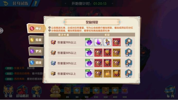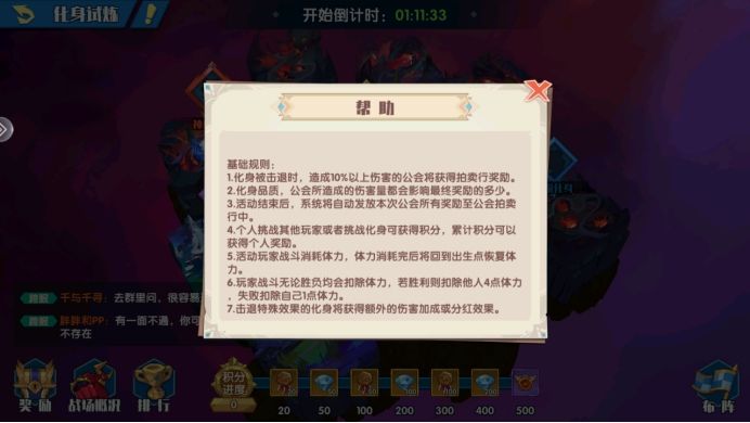 可以稍微提一下的是,这里面得到BOSS都是可以打的,还可以召唤公会里面的好友一起打BOSS,而且每个小BOSS的奖励都单独计算到公会排名奖励里面的,累计起来晚上拍卖就有很多了。下面是活动的奖励