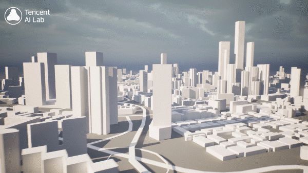 《AI Enhanced Procedural City Generation》效果展示 会上,腾讯展示了使用AI从零开始迅速搭建一座 3D 虚拟城市的过程,所建虚拟城市面积达到 25 平方公里,包含 130 千米路网、 4416 栋建筑以及超过 38 万个室内映射。这样一座大规模城市的“构建”,过去往往需要多名美术师以年为单位的时间才能完成,而结合AI只需要数周。