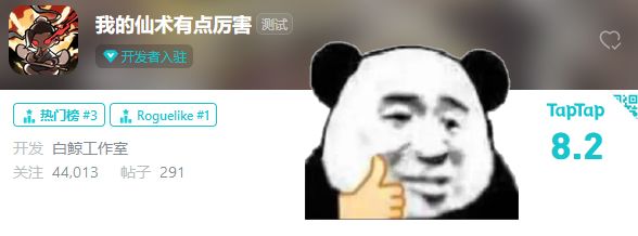 让我们的评分从8.1涨到了8.2,同时获得了热门榜三,肉鸽榜一的好成绩!