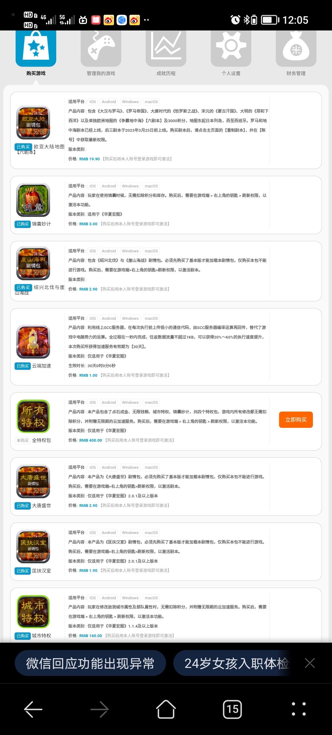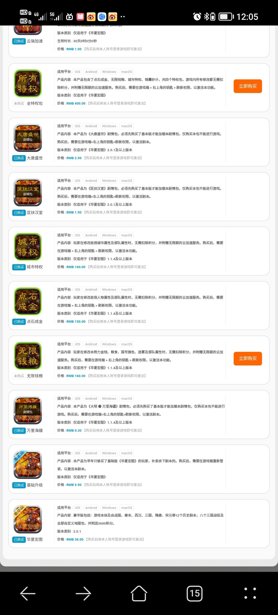 玩这游戏不值得氪金,我几乎全都买了,地中海城邦工业战争文明的尽头都是半成品中的半成品,凑合着能玩还卖的死贵那种,华夏宏图新地图我前两天也买了,就是所谓的地中海城邦的地图嫁接到华夏宏图里面,而且游戏特别卡,手机几乎不能玩,有谁想玩我可以借账号给他体验下,不建议氪金玩,这些游戏真的很垃圾,买之前感觉挺吸引人的,买了之后特后悔那种
