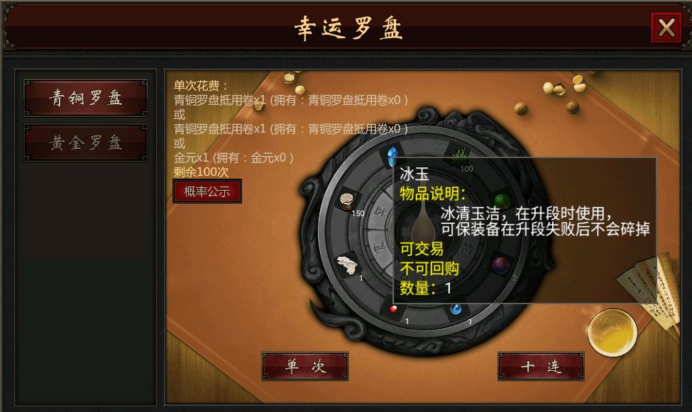冰玉黄金罗盘则只能用元宝抽取,一次50元宝。