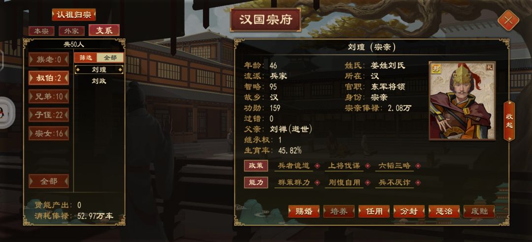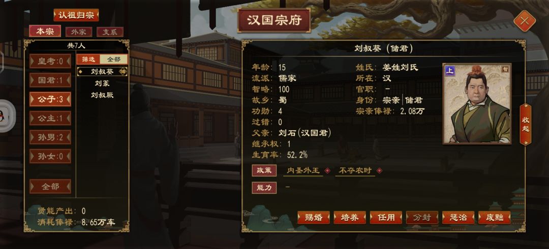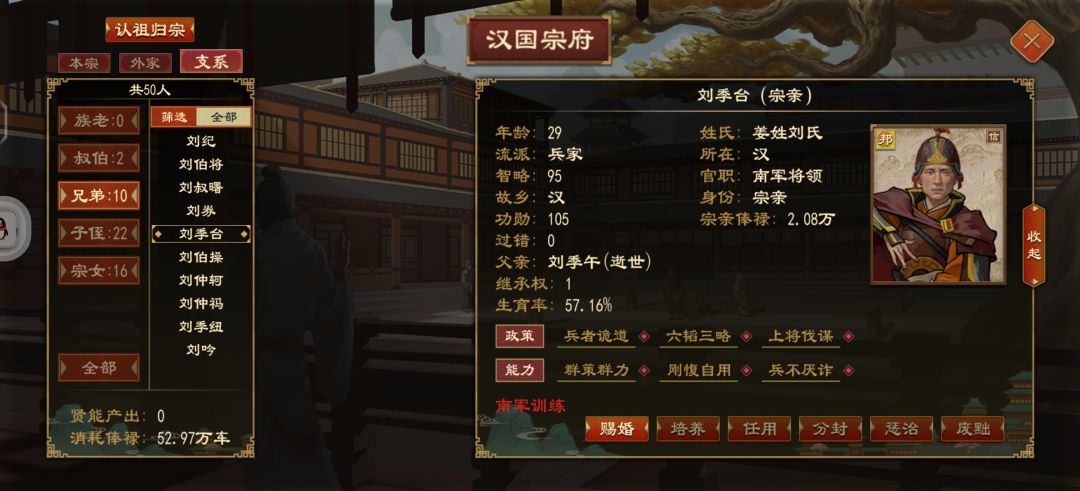 关于宗室的培养,可以后代全给他搞兵家和儒家宗室带兵好培养,讲学可以高智力,尽量在儿童时代求学,好学技能,之后可以讲学把智力加上去。一堆兵不厌诈,群策群力。