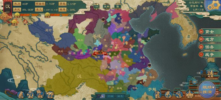 汉秉威信,总率万国,日月所照,皆为臣妾。相信很多人都有一个汉唐梦,我们可以提起开启汉唐盛世,但苦于汉唐太遥远,我现在就用我建立的汉来让大家知道如何建立一个满意的国家开局。其实相对于统一,我更喜欢割据一方,慢慢发展看风云起落。