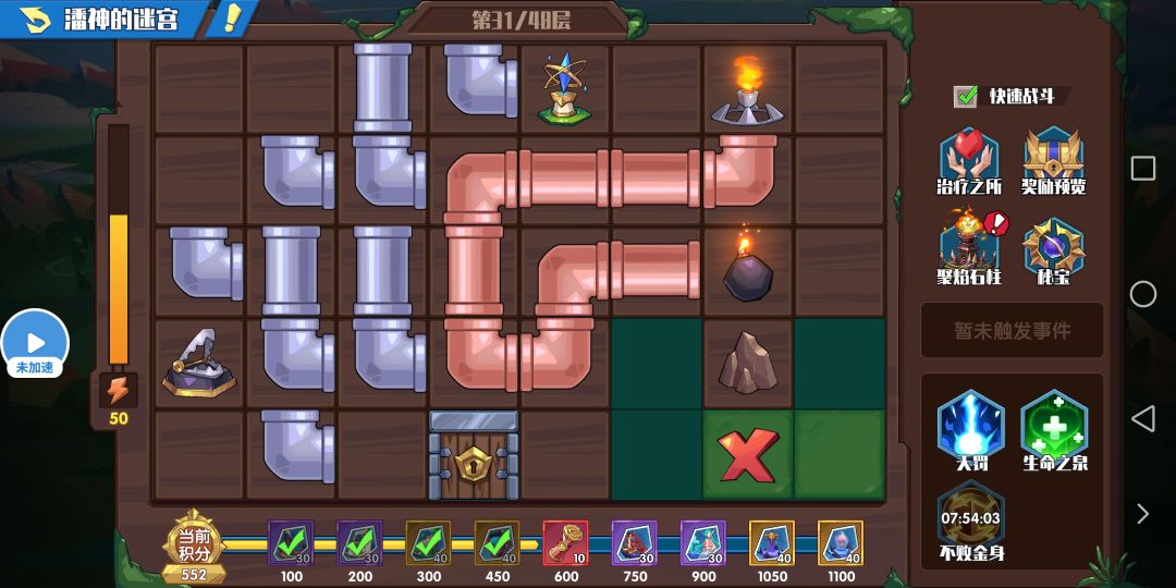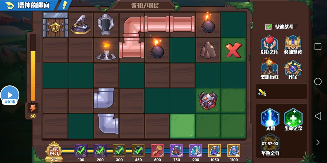 初始80体力,每下一层消耗10点体力,体力不足无法下楼,体力可以慢慢回复。(小声:体力恢复有点慢) 每点开一块草坪获得一点积分,积分达到一定数额可以领取各种秘宝,战力up!!!