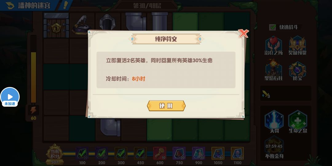 圣物,击败探索都可获得符文石和圣物之心,用来升级和觉醒圣物。加点建议平均升,技能优先。