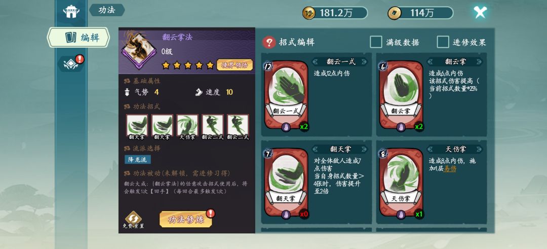 今天测试最后一天,几百抽的状态下给大家看看四个品质的当前抽到的同类最高星一级状态〔图2-5〕,下品功法属性最高,被动词条最劣,抽到同名功法可以用来升星,功法升一颗星获得两个进修点,五个进修点让功法进入下一个层次〔图6〕,算上功法修炼突破获赠的进修点,抽到七本同名功法才能大成获得被动词条,所以按收益和获取难度排序前期养成顺序为中品功法>上品功法>绝品功法,功法流派的选择建议大家在武者后期之前凑齐什么用什么,官方肯定会在不断测试中做好各流派的平衡性,平民玩家前期主玩中品功法,边玩边养上品,绝品存着,紧着高星上品功法来做流派,推本推着顺畅,打到后面慢慢存绝品功法高星了再换流派