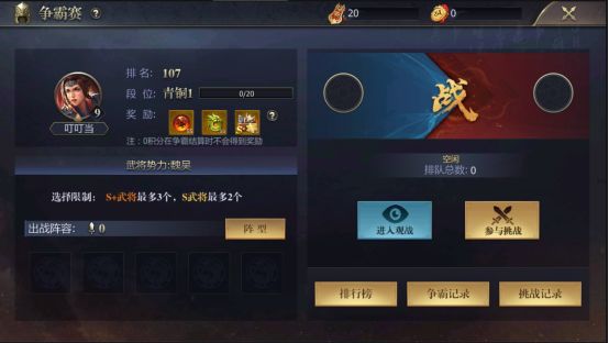1、 没命玩家可以从列种中选择武将阵容,列表会每日刷新,保证公平