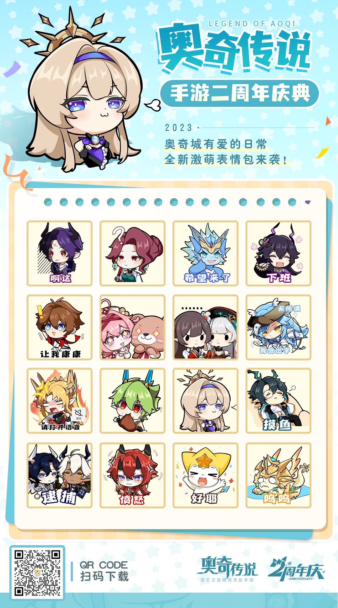 小诺特邀奥奇城知名画师绘制了二周年特典表情包!