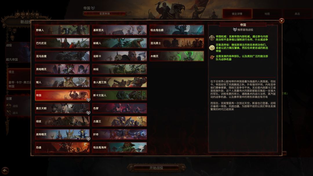 第三代作品包含前两代所有势力(前提是拥有前两代所有势力内容),每一代的作品都包含独特的战役机制的地图以及全部势力的超凡帝国地图。玩家可以根据自己的喜好扮演不同的领主,每一位领主都有自己的特色和机制,不同的势力也有不同的玩法和兵种。在这里你可以扮演秩序方的人类帝国、高等精灵、蜥蜴人、矮人等势力挽救这个破碎的世界,也可以成为混沌四神的信徒毁灭这个世界,或者扮演斯卡文鼠人、绿皮等特殊种族完成各自的势力目标。