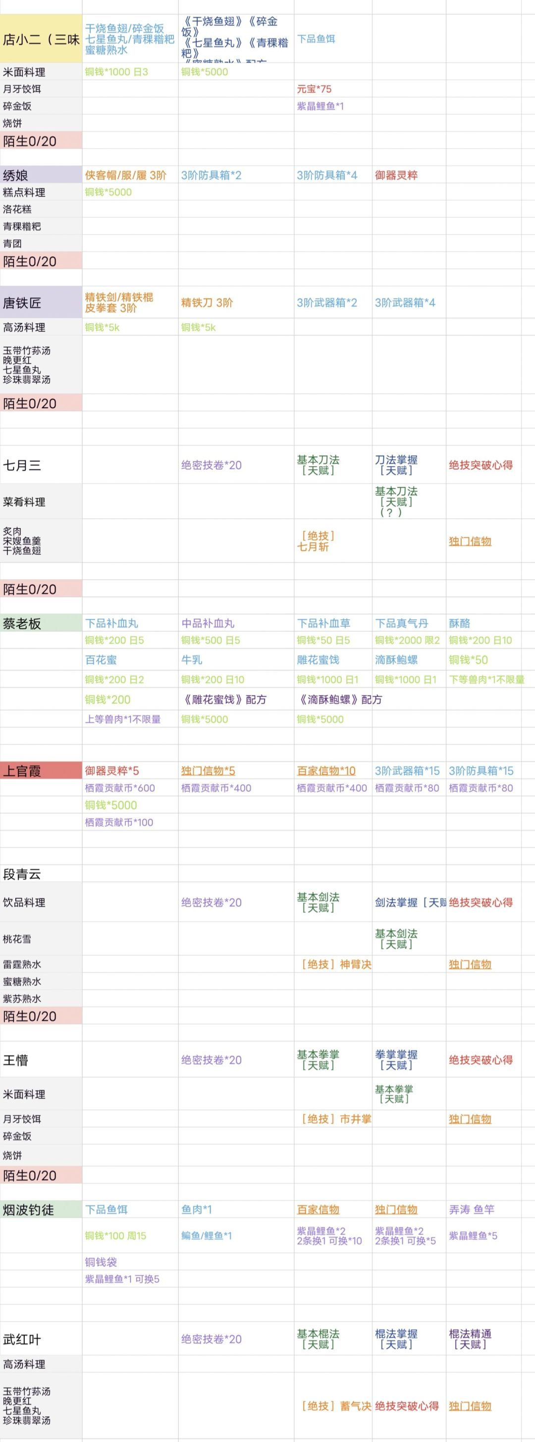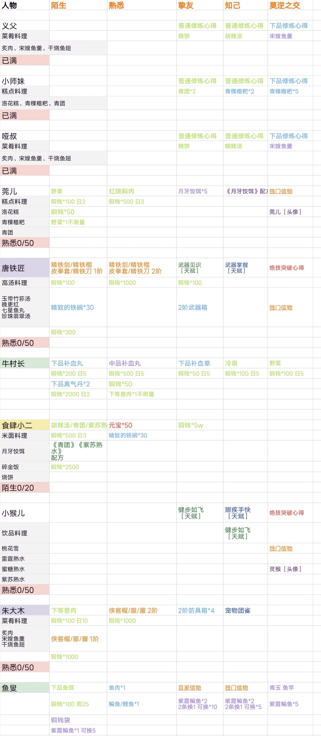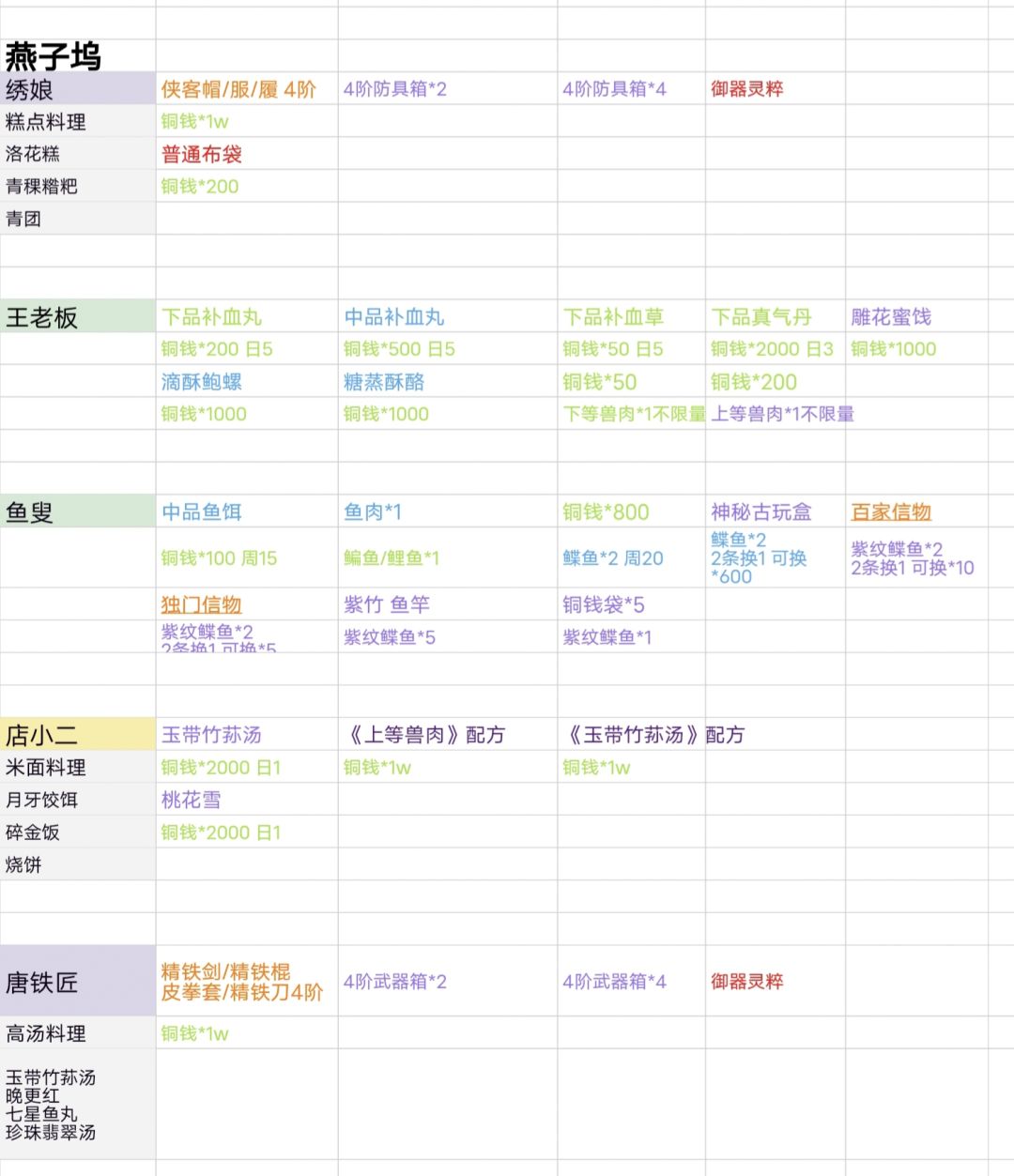 可送礼交易的NPC(牛家村 栖霞镇 燕子坞)