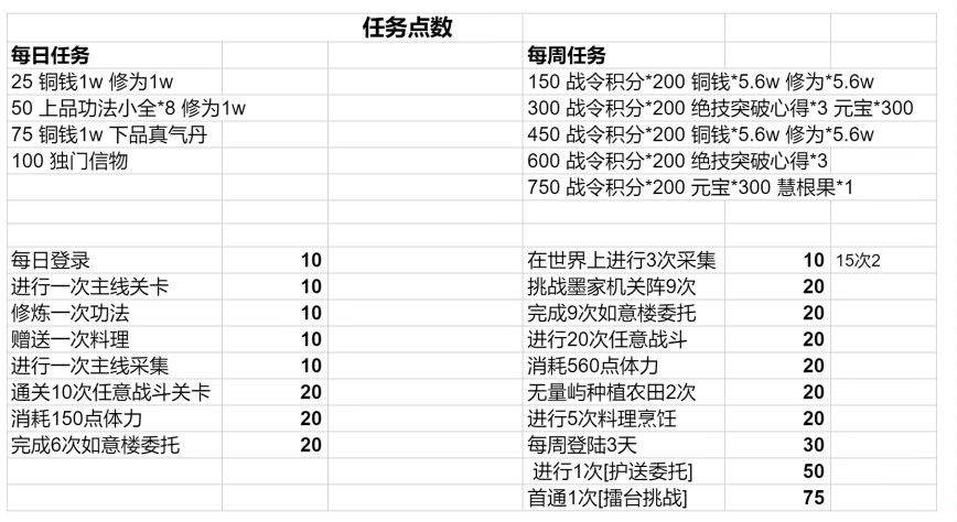 烹饪 炼制 材料 兑换商城 任务 小tip