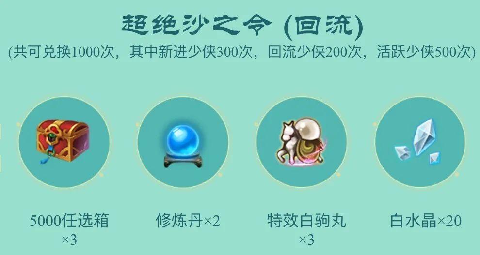 举例:如果有族长将【超绝·沙之令】分享给了近一周登录过游戏的少侠A,那么少侠A可兑换的奖励就属于活跃类型。