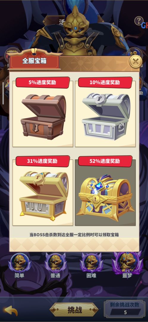 反馈:挑战boss全服奖励的52%进度宝箱领取不了!