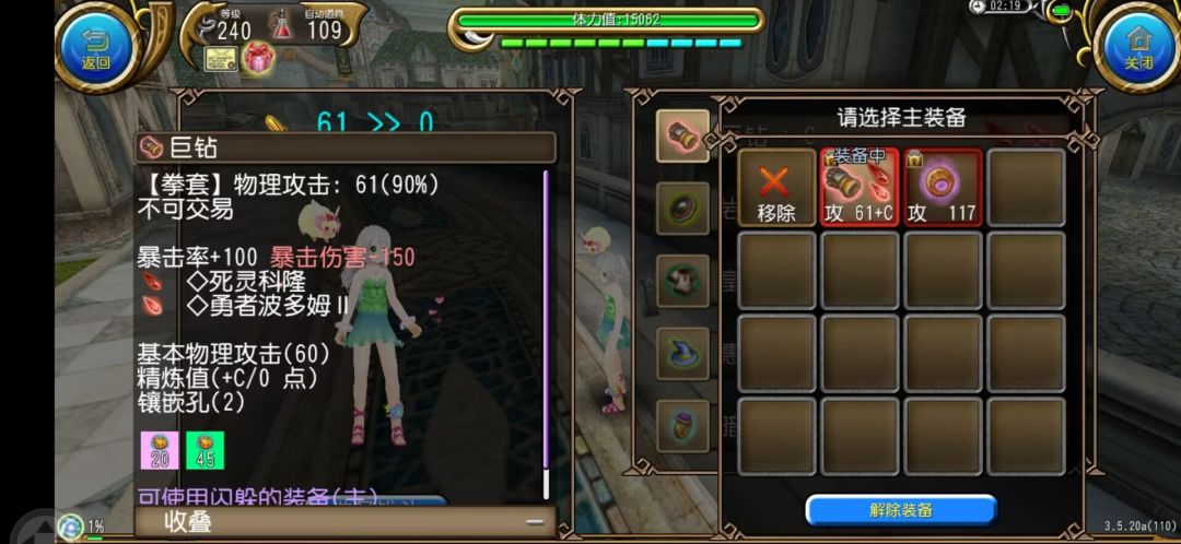 为什么还是选择巨钻?因为国服并没有合适的加成攻速的拳,其次巨钻获取成本很低,途径简单,100的暴击可以直接不用考虑带暴击类的装备和王石。