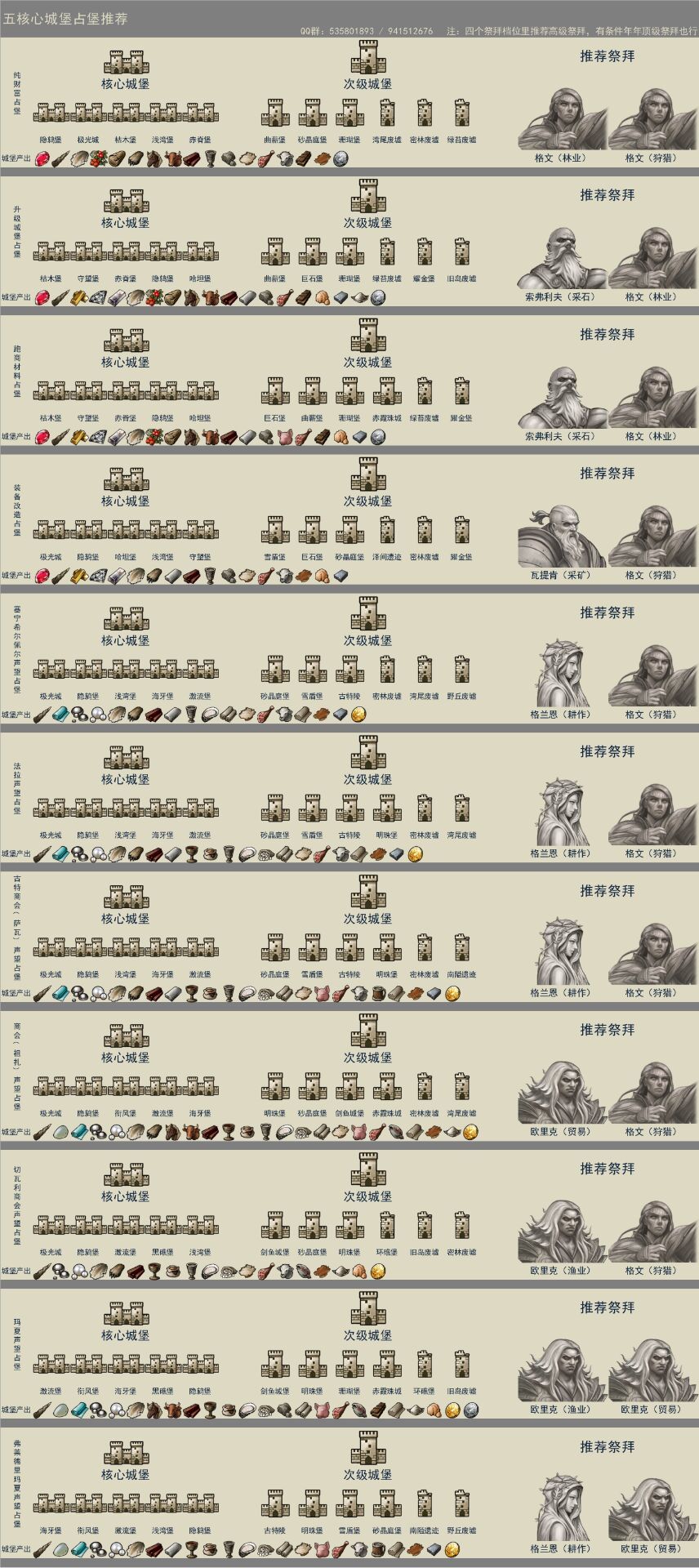 先说一下我的看法 到了中后期基本上都(不需要石头木头升堡了)是狩猎贸易堡