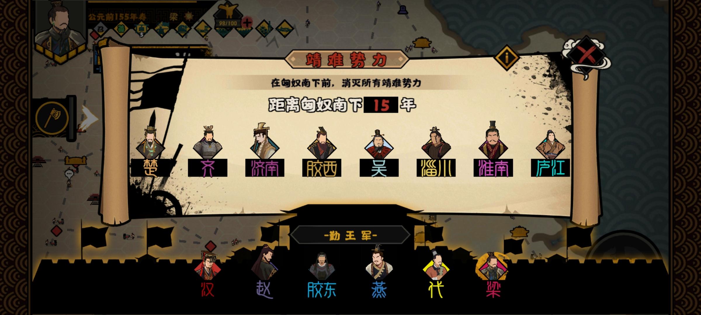 因为玩了汉和淮南恶人,今天玩把梁好人,结果第一次家宴后藩王就反了,这...人机汉就只能发动靖难之战的是吧,各它解释一下这符合你之前说的“更符合历史走向吗?”好歹等汉招募到晁错在叛乱吧