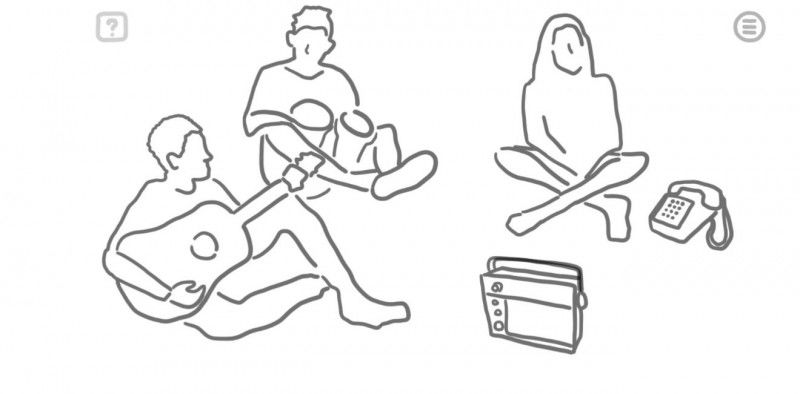 2.点击其他人听歌,并按照音符的变化,再点击音符,使之符合(注:左上角的问号点击,可以看见他们的弹奏顺序)