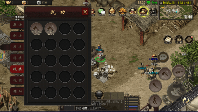 一个武功练满后就可以修炼下一个武功了,点击右上角的地图可以找到各个武功秘籍NPC的位置。购买武功秘籍需要钱币,修炼武功会消耗内功(蓝条)。所以汤药的消耗也是非常大的!刷怪所掉落的材料可以卖给老板娘,换取钱币。