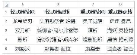 这里为了方便继承者查看,将图中所示的所有技能和魂核按照顺序排进了表格。
