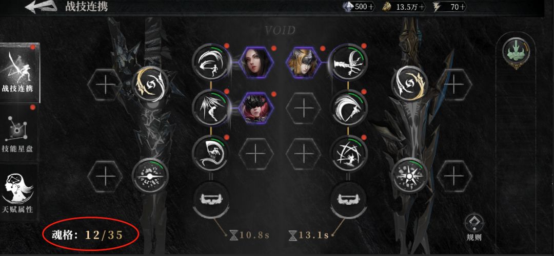 2.魂核安装时需要消耗【魂格】,每个魂核拥有数量不等的【魂格】,安装至战技连携中的魂核总魂格数不得超过当前战技连携魂格上限。