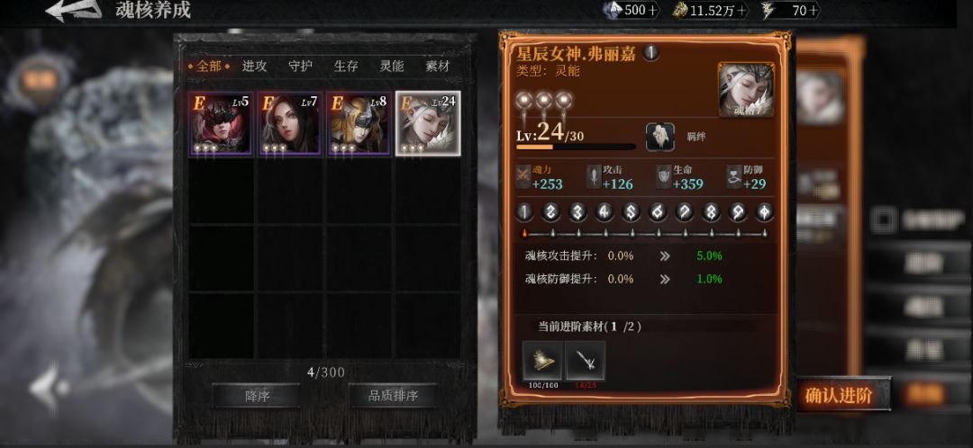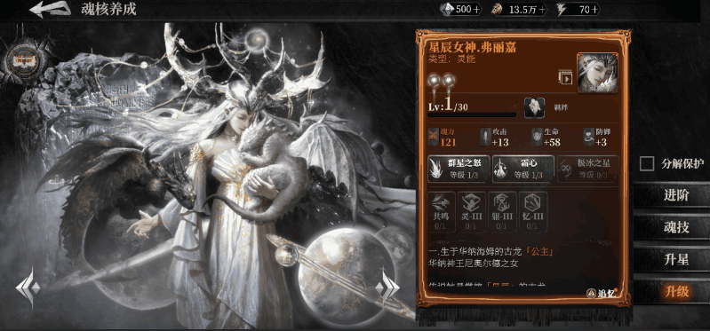 需要特别注意的是,升星会同时吞噬已有魂核的经验,附带提升魂核技能等级。所以有本体建议优先用来升星,而非升级或魂核技能升级。