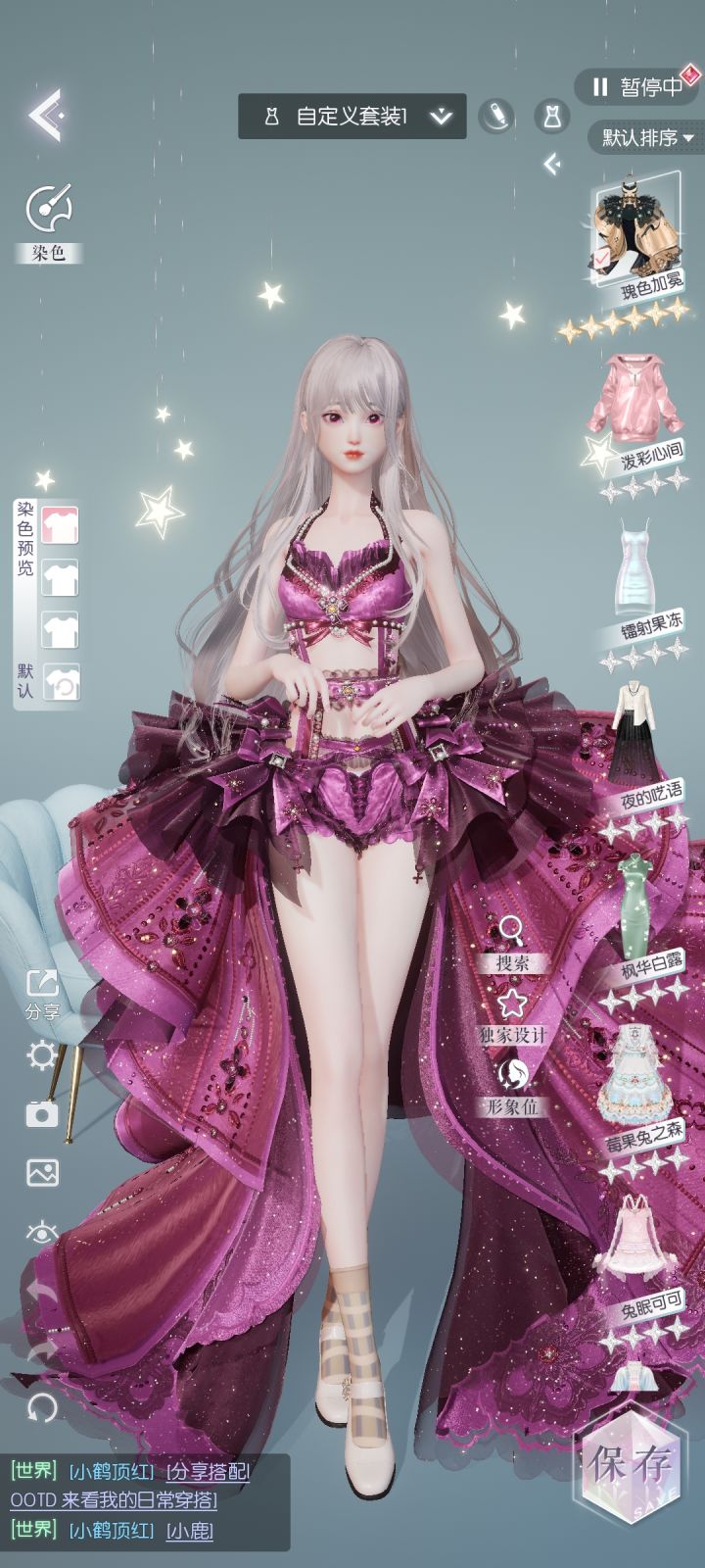 开局十抽就出了这个瑰色加冕,真的很美!然后想着给染个颜色,但是染色盘都很贵舍不得开只能开一个色块呜呜呜,但是还是好美!