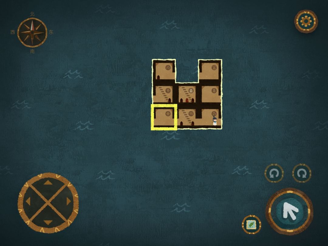 1.旅舍大厅,楼梯下的地图不能旋转移动,但是和楼梯上的地图是对应的,所以在楼梯下出现死路时通过楼梯上的地图旋转移动,旋转至如图所示