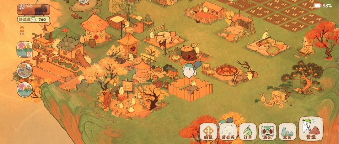 当你没有加工任务作坊处于闲置状态中,小萝卜就会处于打瞌睡、偷懒摸鱼,大景下建筑还会反复飘出“空”字,实属可爱到冒泡了(腌菜缸那小小的“空”)
