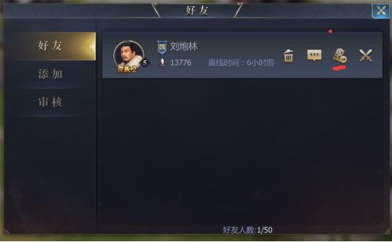 兄弟多者得天下,和各路小伙伴们广加好友,每日互送军令,切磋,国战路上有人相伴!