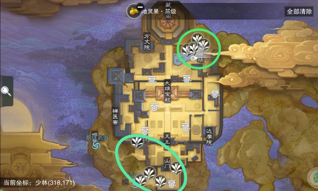 最佳采集点:推荐少林,缺点是线路少,刷新速度稍慢,需要手动采集。