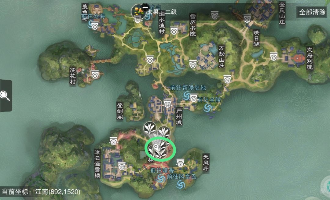 最佳采集点:推荐江南芳菲林,位置刷新固定,可以定点换线采集。