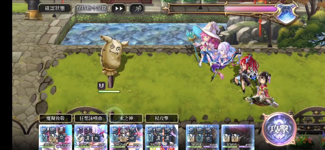 技能机制很有意思,和角色自身当前的MP挂钩,所以蕾蕾某种意义上,输出和自身天值挂钩,特别是2-3回合的战斗: