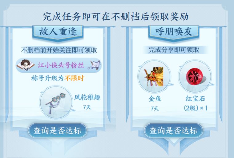 温馨提示:所有奖励将在不删档时通过页面领取,已关注的少侠无需重复关注。