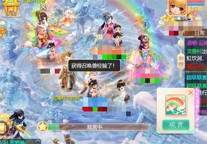 二、挂机福利完成《清明见闻 风雨濯春尘》剧情任务可获得新道具“小纸鸢”,活动期间在已放晴区域使用该道具,可化身随机孩子造型放飞纸鸢,同时获得召唤兽经验值(当日累计获得1小时后该效果消失)。在“长虹饮涧”出现时,更可以加速经验获得!