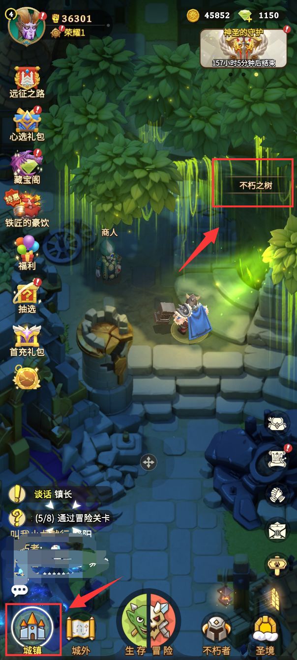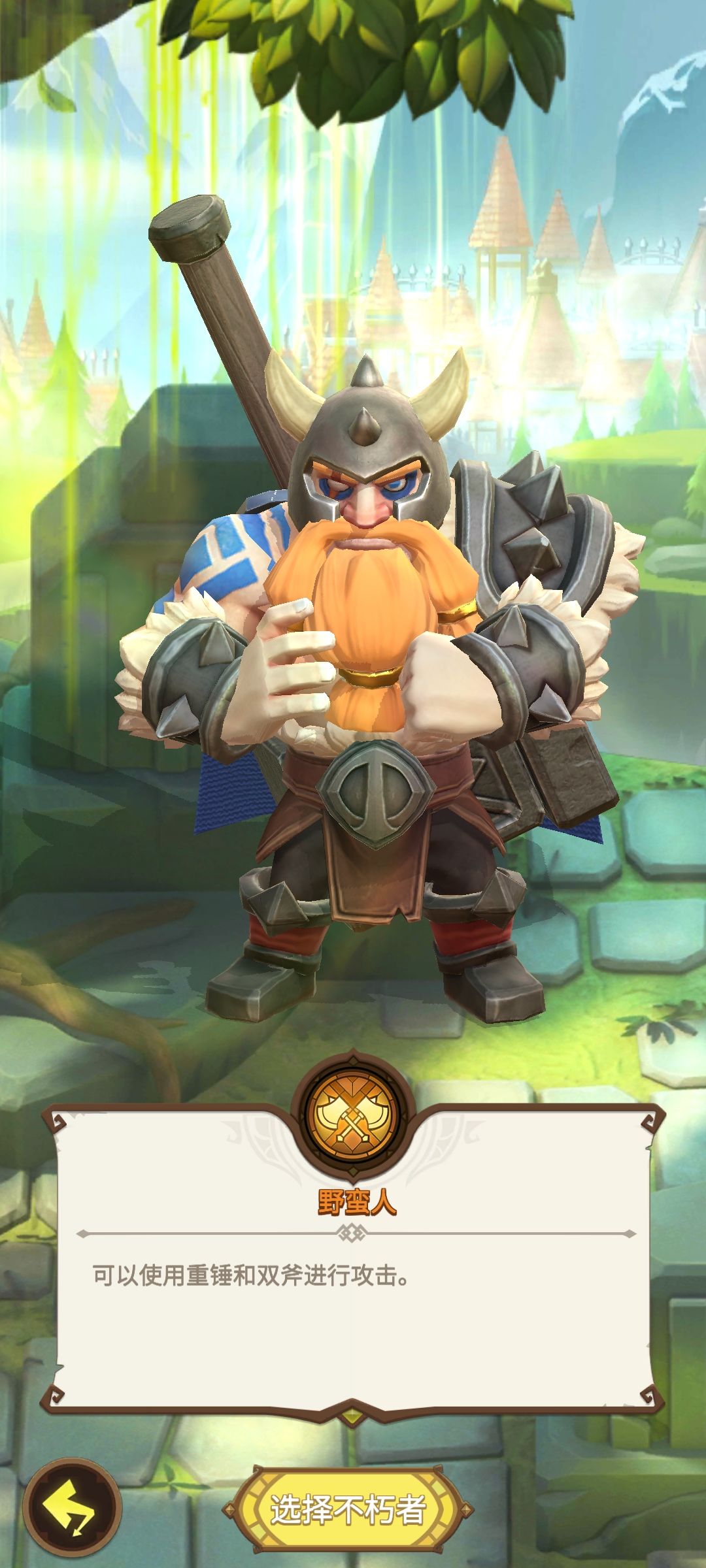 进入游戏时玩家需要先选择一个职业进行新手教程。这个职业并非固定不变的,过完新手引导后,可前往【城镇】尽头的【不朽之树】使用钻石解锁另外两个职业(解锁第二职业需100钻石,解锁第三职业需500钻石,共计600钻石)。