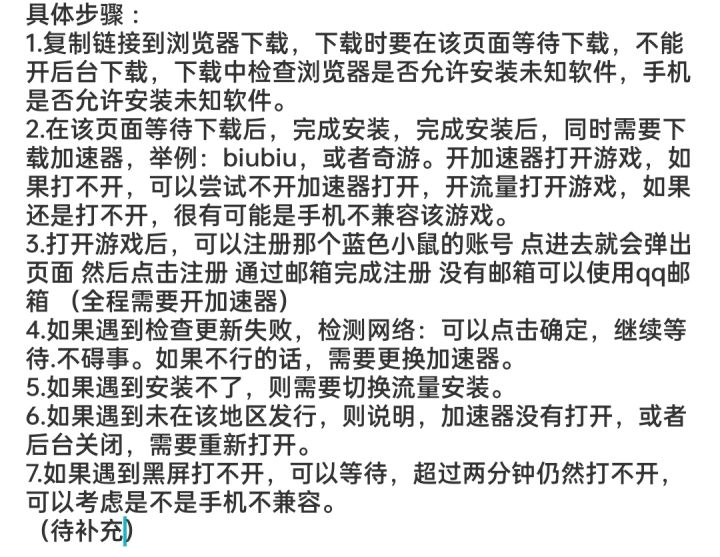 2.在该页面等待下载后,完成安装,完成安装后,同时需要下载加速器,举例:biubiu,或者奇游。开加速器打开游戏,如果打不开,可以尝试不开加速器打开,开流量打开游戏,如果还是打不开,很有可能是手机不兼容该游戏。