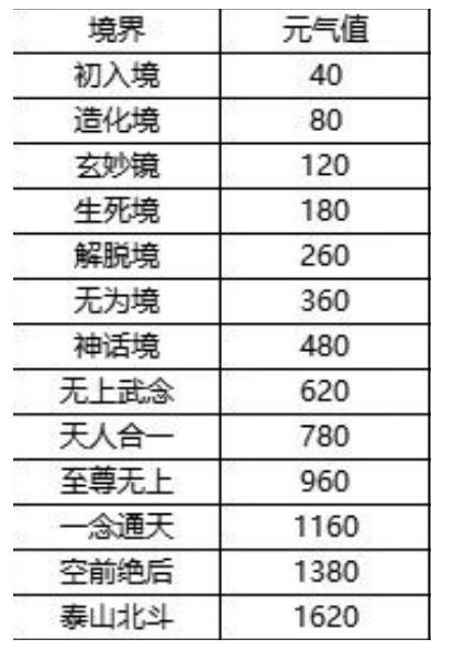 元气:修炼武功获得的数值,数值达到一定程度即可提升自身境界;