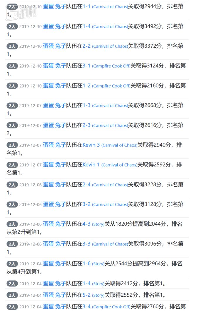 此时的世界纪录网站虽已建立了一段时间,但竞争不算激烈,蛋蛋和她的搭档兔子曾一度包圆了《分手厨房2》中全部81个关卡的世界纪录。