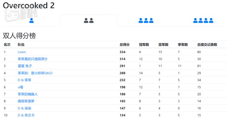 《分手厨房2》双人得分榜的前十名里有九对是中国玩家的组合