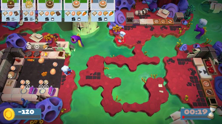 在这个游戏里,玩家要通过合作来完成一道道菜肴、送菜、洗碗,从而获取尽量高的分数。虽然画风可爱、上手简单,但在实际游玩的过程中,玩家们通常会体验到一个残酷的现实——“1+1未必大于2”。