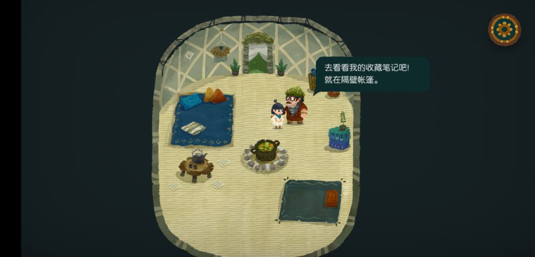 去看笔记,在隔壁帐篷靠左下位置的一本书,看完回来问他继续剧情