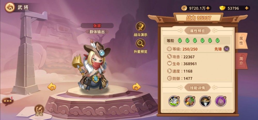 猛将:偏坦克定位,攻击以及血量基础成长高,部分武将带有一定的恢复能力,是放在1号位的首选
